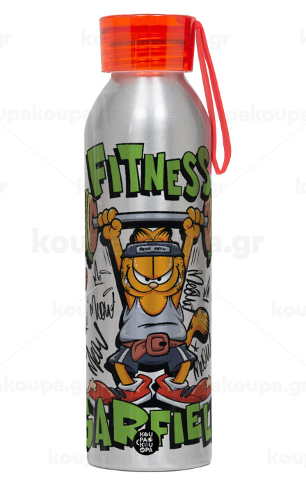 Garfield Fitness, Aluminum Sports Bottle 650ml – Silver with Red Cap and Silicone Strap