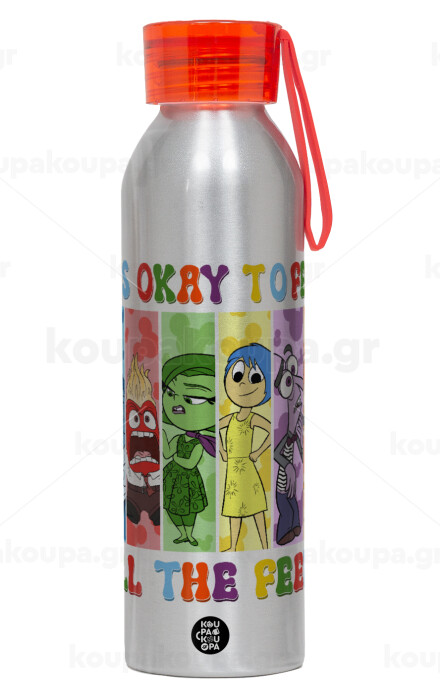 Inside Out It's Okay To Feel All The Feels , Aluminum Sports Bottle 650ml – Silver with Red Cap and Silicone Strap