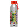 Aluminum Sports Bottle 650ml - Silver with Red Cap and Silicone Strap