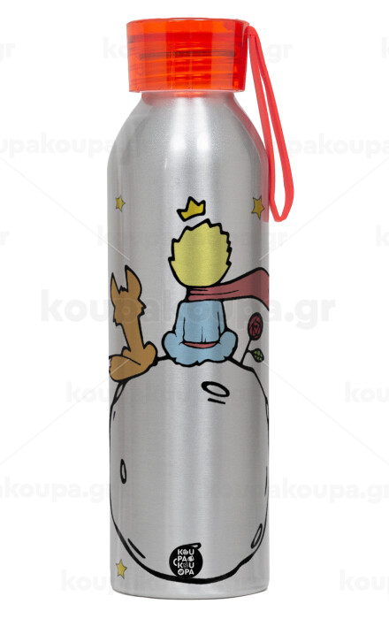 Little prince, Aluminum Sports Bottle 650ml – Silver with Red Cap and Silicone Strap