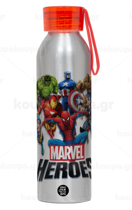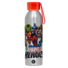 MARVEL heroes, Aluminum Sports Bottle 650ml – Silver with Red Cap and Silicone Strap