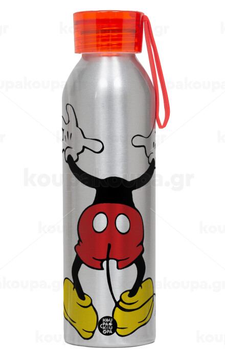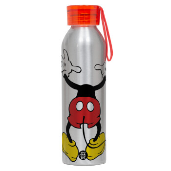 Mickey hide..., Aluminum Sports Bottle 650ml – Silver with Red Cap and Silicone Strap