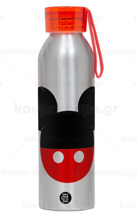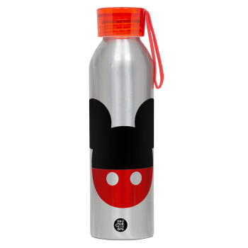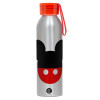 Mickey head, Aluminum Sports Bottle 650ml – Silver with Red Cap and Silicone Strap