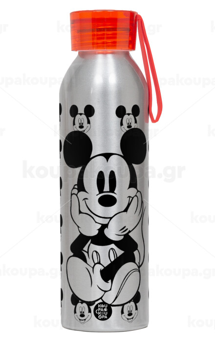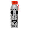Mickey, Aluminum Sports Bottle 650ml – Silver with Red Cap and Silicone Strap