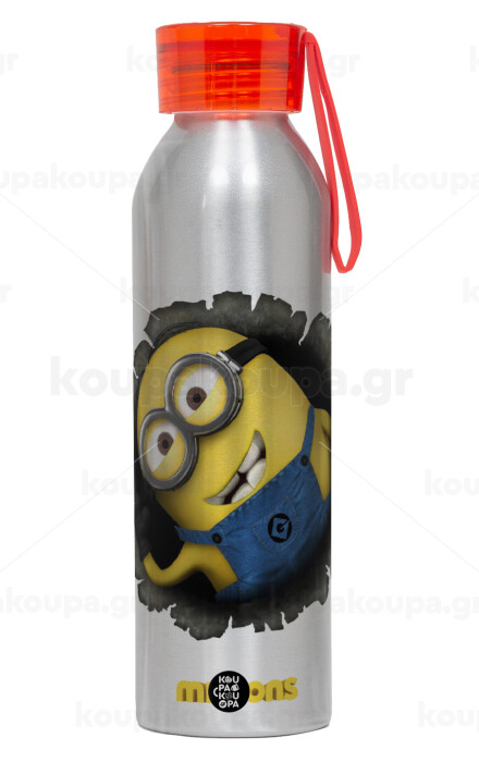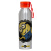Minions hi, Aluminum Sports Bottle 650ml – Silver with Red Cap and Silicone Strap