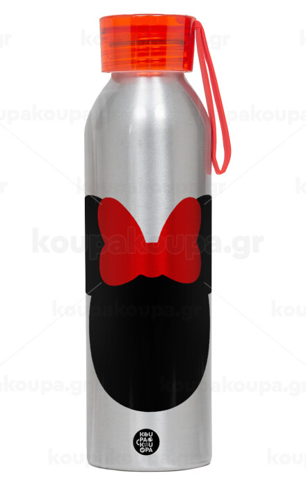 Minnie head, Aluminum Sports Bottle 650ml – Silver with Red Cap and Silicone Strap