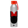 Aluminum Sports Bottle 650ml - Silver with Red Cap and Silicone Strap