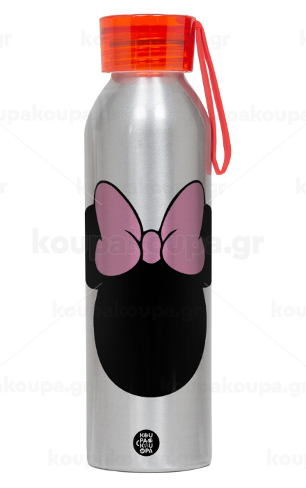 mouse girl, Aluminum Sports Bottle 650ml – Silver with Red Cap and Silicone Strap