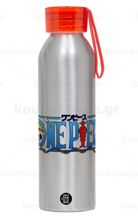 Onepiece logo, Aluminum Sports Bottle 650ml – Silver with Red Cap and Silicone Strap