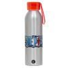Aluminum Sports Bottle 650ml - Silver with Red Cap and Silicone Strap