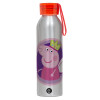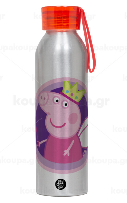 Peppa pig Queen, Aluminum Sports Bottle 650ml – Silver with Red Cap and Silicone Strap