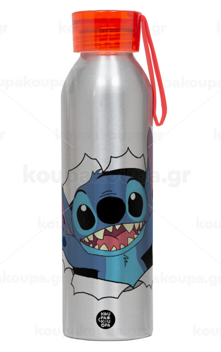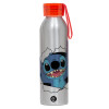 Stitch hello!!!, Aluminum Sports Bottle 650ml – Silver with Red Cap and Silicone Strap