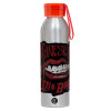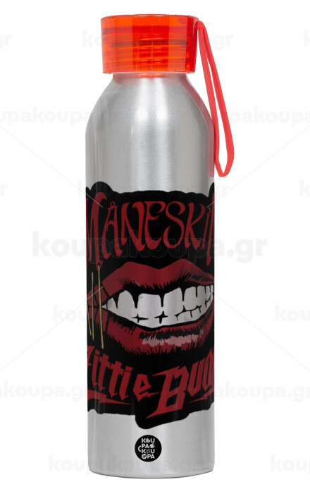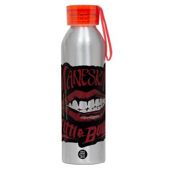 Maneskin lips, Aluminum Sports Bottle 650ml – Silver with Red Cap and Silicone Strap