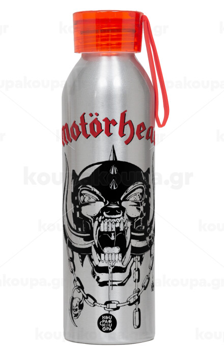 motorhead, Aluminum Sports Bottle 650ml – Silver with Red Cap and Silicone Strap