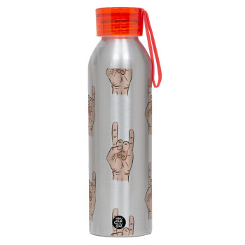 Rock hands, Aluminum Sports Bottle 650ml – Silver with Red Cap and Silicone Strap