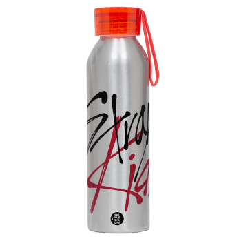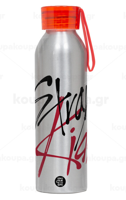 Stray Kids, Aluminum Sports Bottle 650ml – Silver with Red Cap and Silicone Strap