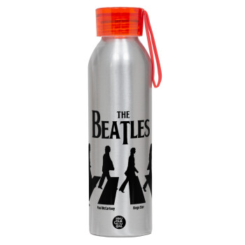 The Beatles, Abbey Road, Aluminum Sports Bottle 650ml – Silver with Red Cap and Silicone Strap