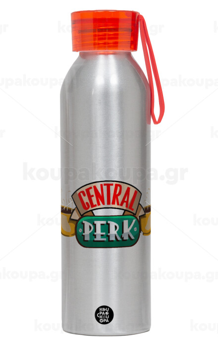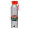 Central perk, Aluminum Sports Bottle 650ml – Silver with Red Cap and Silicone Strap