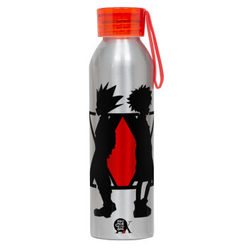 hunter x hunter, Aluminum Sports Bottle 650ml – Silver with Red Cap and Silicone Strap