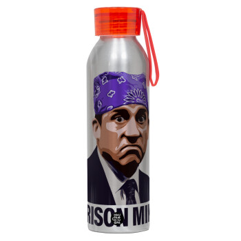 Prison Mike The office, Aluminum Sports Bottle 650ml – Silver with Red Cap and Silicone Strap