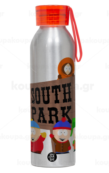 South Park, Aluminum Sports Bottle 650ml – Silver with Red Cap and Silicone Strap