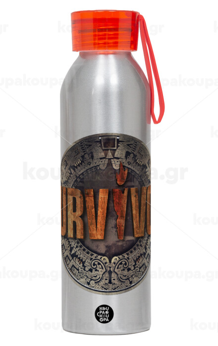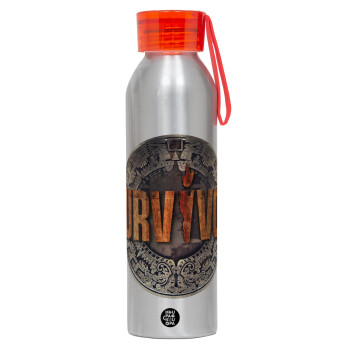 Survivor, Aluminum Sports Bottle 650ml – Silver with Red Cap and Silicone Strap