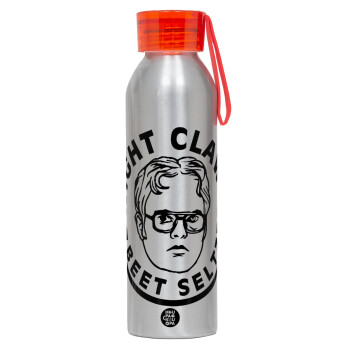 The office Dwight Claw (beet seltzer), Aluminum Sports Bottle 650ml – Silver with Red Cap and Silicone Strap