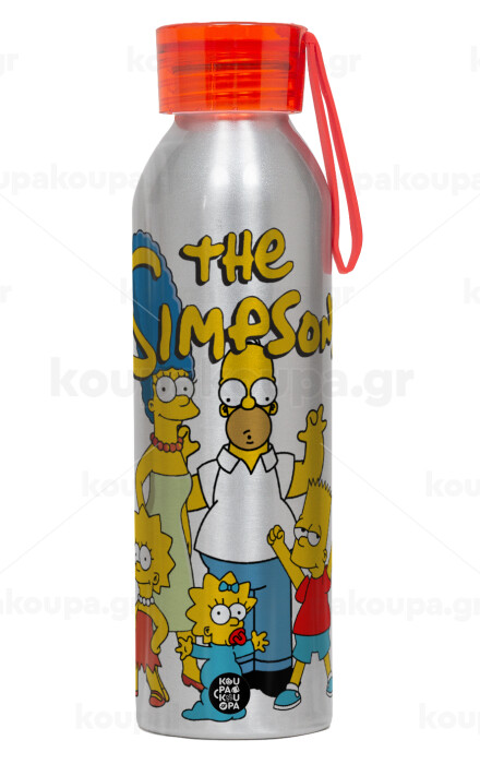 The Simpsons, Aluminum Sports Bottle 650ml – Silver with Red Cap and Silicone Strap