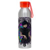 Wednesday Jenna Ortega, Aluminum Sports Bottle 650ml – Silver with Red Cap and Silicone Strap