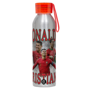 Discover the perfect bottle for every moment of the day! The aluminum sports bottle 650ml in sleek silver color with red cap and practical silicone strap combines style, comfort and functionality.