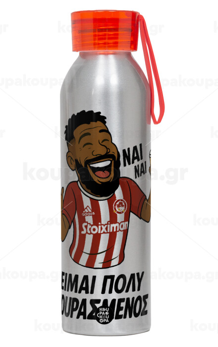Ροντινέι, "ΠΟΛΥ ΚΟΥΡΑΣΜΕΝΟΣ", Aluminum Sports Bottle 650ml – Silver with Red Cap and Silicone Strap
