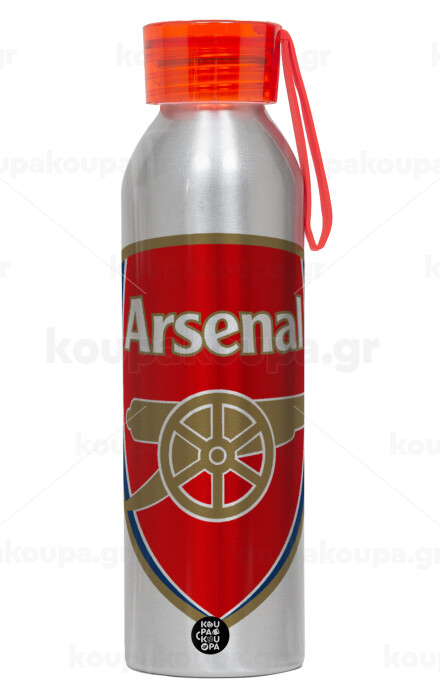 Arsenal, Aluminum Sports Bottle 650ml – Silver with Red Cap and Silicone Strap