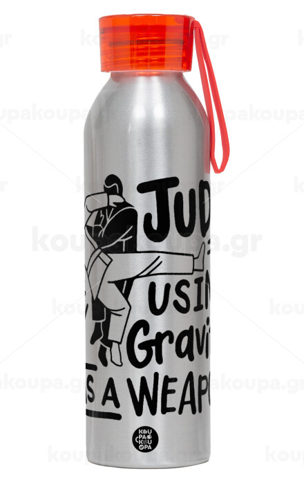 Judo using gravity as a weapon, Aluminum Sports Bottle 650ml – Silver with Red Cap and Silicone Strap