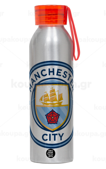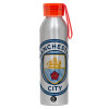 Manchester City FC , Aluminum Sports Bottle 650ml – Silver with Red Cap and Silicone Strap