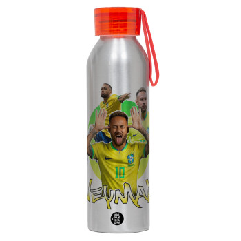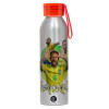 Neymar JR, Aluminum Sports Bottle 650ml – Silver with Red Cap and Silicone Strap