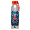 Paris Saint-Germain F.C., Aluminum Sports Bottle 650ml – Silver with Red Cap and Silicone Strap