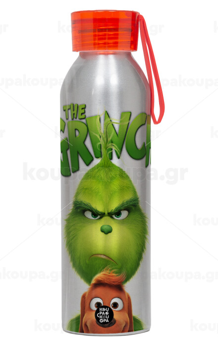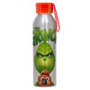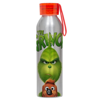 mr grinch, Aluminum Sports Bottle 650ml – Silver with Red Cap and Silicone Strap