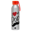 I Love my papa, Aluminum Sports Bottle 650ml – Silver with Red Cap and Silicone Strap