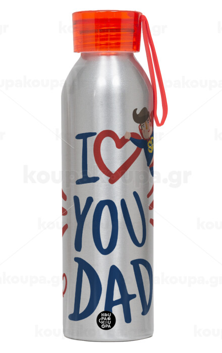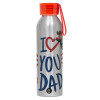 Super Dad, Aluminum Sports Bottle 650ml – Silver with Red Cap and Silicone Strap