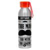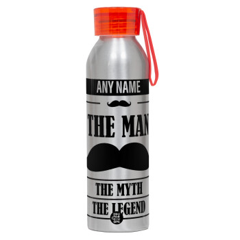 The man, the myth, Aluminum Sports Bottle 650ml – Silver with Red Cap and Silicone Strap
