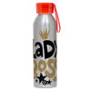 Lady Boss, Aluminum Sports Bottle 650ml – Silver with Red Cap and Silicone Strap