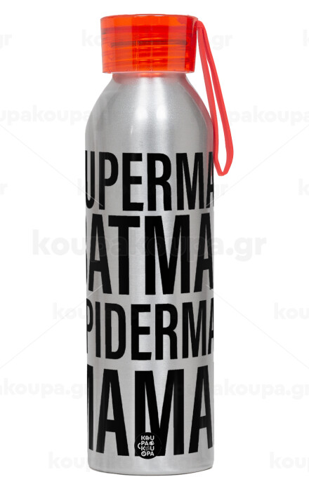 MAMAN, Aluminum Sports Bottle 650ml – Silver with Red Cap and Silicone Strap