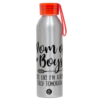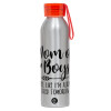 Mom of boys i feel like im already tired tomorrow, Aluminum Sports Bottle 650ml – Silver with Red Cap and Silicone Strap