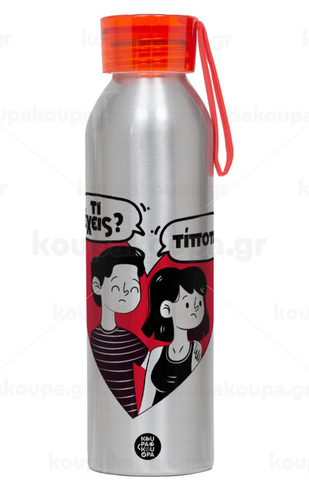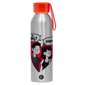Τι έχεις? Τίποτα!, Aluminum Sports Bottle 650ml – Silver with Red Cap and Silicone Strap