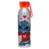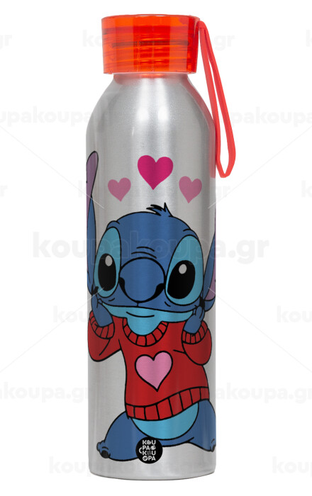 Stitch heart, Aluminum Sports Bottle 650ml – Silver with Red Cap and Silicone Strap