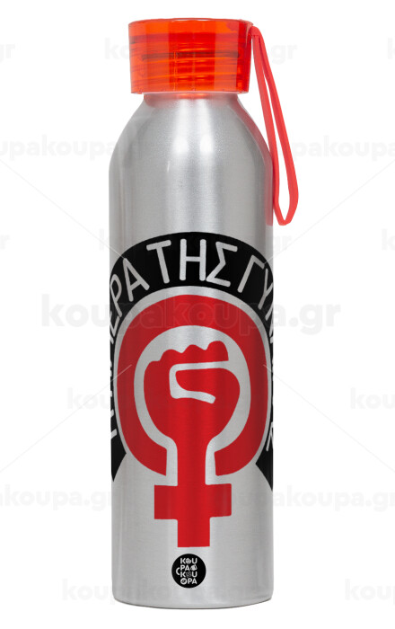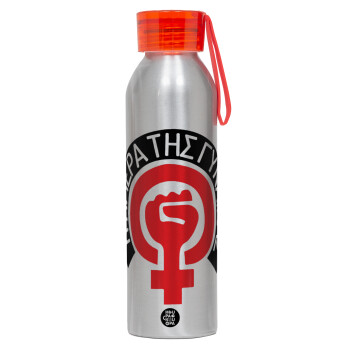 Ημέρα της γυναίκας, Aluminum Sports Bottle 650ml – Silver with Red Cap and Silicone Strap