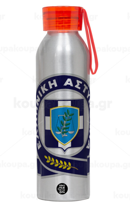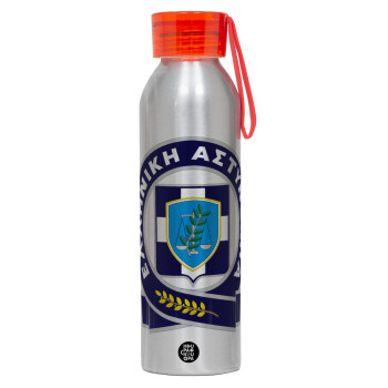 Ελληνική Αστυνομία, Aluminum Sports Bottle 650ml – Silver with Red Cap and Silicone Strap