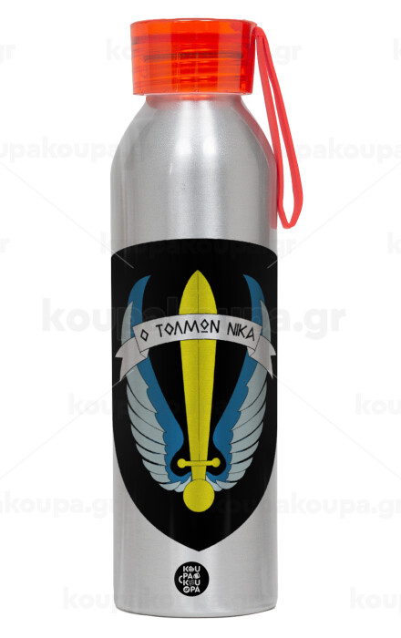 Έμβλημα Μονάδων Καταδρομών Ο Τολμων Νικα - Λοκ, Aluminum Sports Bottle 650ml – Silver with Red Cap and Silicone Strap