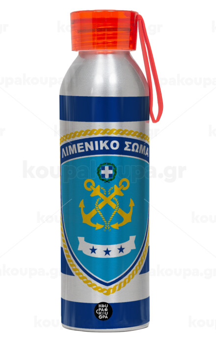 Hellenic coast guard, Aluminum Sports Bottle 650ml – Silver with Red Cap and Silicone Strap