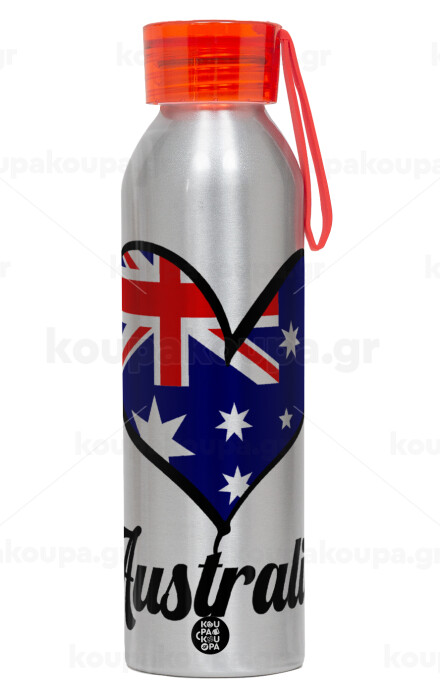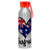 Australia flag, Aluminum Sports Bottle 650ml – Silver with Red Cap and Silicone Strap
